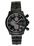 Band Color: Black ; Band Width: 24mm near case; 22mm near clasp/buckle; Bezel Color: Black; Case: Black + Circle-shaped; Case Finish: Flat + Stainless Steel; Case Thickness: 23mm to 10mm; Case Width: 47mm; 51mm with crown; Clasp / Buckle: Fold Over Push Button Deployment; Dial: Black + analog; Hand Color: Black; Movement: Other + quartz; Time Zones: Single; Water Resistance: 10 atm; Other Features: Date Display; Tachymeter